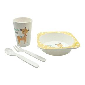 4 Kit Refeição Infantil - Prato Fundo, Copo, Colher e GarfoO kit é fabricado com a mistura de plástico e resina de fibra da palha do trigo, sendo um composto orgânico que se decompõe mais facilmente na natureza, contribuindo assim para redução do lixo e da poluição do solo, das águas e do ar.Características• Material: Plástico• Não pode ir ao freezer• Não pode ir na lava-louças• Capacidade do copo: 230 mlMedidas do Produto• Copo: 6,9 cm (Diâmetro) x 9,5 cm (Altura)• Garfo : 2,4 cm (Largura) x 13 cm (Comprimento)• Colher: 2,7 cm (Largura) x 13,5 cm (Comprimento)• Prato Fundo: 4 cm (Altura) x 12,4 cm (Diâmetro Interno) x 14 cm (Diâmetro Externo)Observação• Evite contato com superfícies quentes, como chapas e grelhas.• Lave apenas com água, esponja macia e detergente neutro. Evite produtos abrasivos.