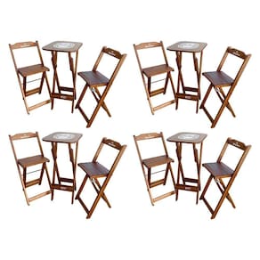 Kit 4 Conjuntos Bistrô Mesa Com 2 Banquetas Dobráveis De Madeira Personalizada Hei - Imbuia