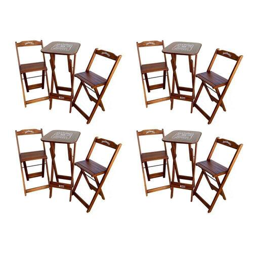 Kit 4 Conjuntos Bistrô Mesa Com 2 Banquetas Dobráveis De Madeira Personalizada Jack - Imbuia - Cor: Marrom