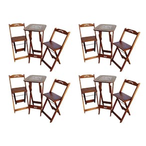 Kit 4 Conjuntos Bistrô Mesa Com 2 Banquetas Dobráveis De Madeira Personalizada Jack - Imbuia