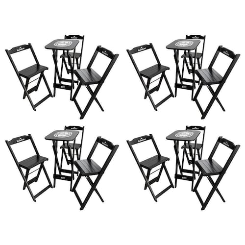 Kit 4 Conjuntos Bistrô Mesa Com 3 Banquetas Dobráveis De Madeira Personalizada Hei - Preta