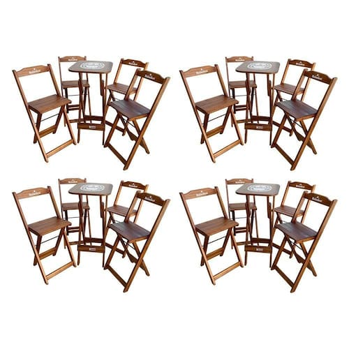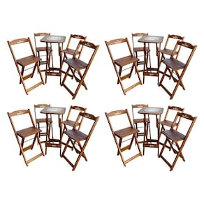 Kit 4 Conjuntos Bistrô Mesa Com 4 Banquetas Dobráveis De Madeira Personalizada Hei - Imbuia