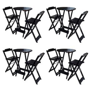 Kit 4 Conjuntos de Mesa Bistrô Dobraveis em Madeira Padrão com 2 Banquetas Altas - Preto - Preto