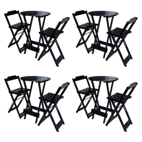 Kit 4 Jogos De Mesa Bistrô De Madeira Com 2 Cadeiras Dobravel Ideal Para Bar E Restaurante Preto