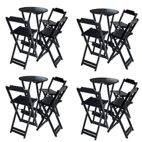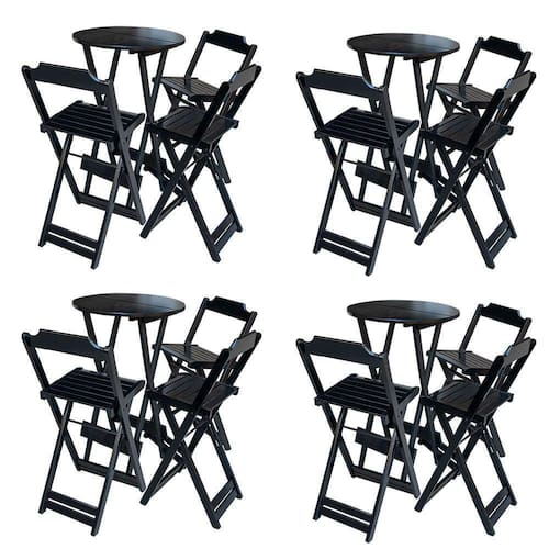 Kit 4 Conjuntos De Mesa Bistrô Dobravel Em Madeira Maciça Com 3 Banquetas Altas - Preto - Preto