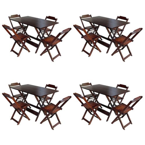 Kit 4 Conjuntos De Mesa Com 4 Cadeiras De Madeira Dobravel 120x70 Imbuia - Cor: Marrom