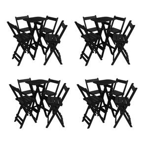 AS IMAGENS SÃO MERAMENTE ILUSTRATIVAS E PODEM SOFRER VARIAÇÕES DE COR E PEQUENOS DETALHES DE ACORDO COM O SEU MONITOR, ILUMINAÇÃO DO AMBIENTE E ATÉ MESMO A SUA PERCEPÇÃO VISUAL.Kit 4 Conjuntos Mesa Bistrà Bar DobrÃvel Com 4 Cadeiras Em Madeira MaciÃa - Preto