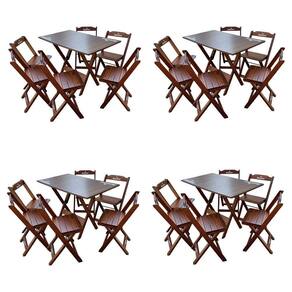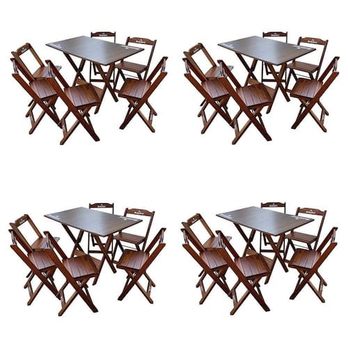 Kit 4 Conjuntos Mesa Dobrável Madeira 110x70 Com 6 Cadeiras Personalizada Hei Imbuia - Tarimatã