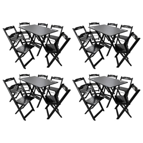 Kit 4 Conjuntos Mesa Dobrável Madeira 110x70 Com 6 Cadeiras Personalizada Hei Preta - Tarimatã