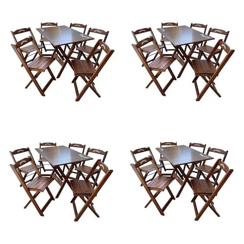 Kit 4 Conjuntos Mesa Dobrável Madeira 110x70 Com 6 Cadeiras Personalizada Jack Imbuia - Tarimatã
