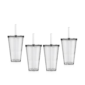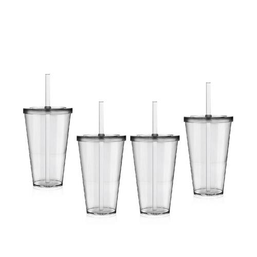 Kit 4 Copos Com Tampa E Canudo 550Ml Acrílico