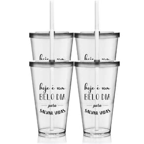 O Copo com Tampa e Canudo 550 ml é perfeito festas e baladas de muito estilo e quer deixar todos dançando com suas bebidas favoritas sem derramar uma gota. Especificações: Material: Poliestireno Acrílico PS Altura: 14,5 Diâmetro: 9,5 cm Capacidade: 550 ml Cor: Transparente Quantidade: 4 peças Ficha técnica - Capacidade em volume: 550 ml - Bebidas recomendadas: Sucos e refrigerantes - Com sorvete: Não - Unidades por kit: 4 - Quantidade: 4 peças - Formato de venda: Kit - Diâmetro da boca: 9,5 - Tamanho: Único - Cor: Transparente - Tipo de produto: Copo - É adequado para lava-louças: Sim - É produto personalizado: Sim - Quantidade de kits: 1