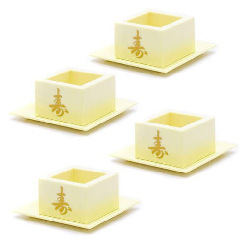 Kit C/4 Copos Sake Massu Ideograma Japonês Cor Creme 65ml Descrição: Copo japonês produzido em material plástico ABS polido e envernizado, apresenta formato quadrado na cor bege com ideograma japonês dourado, ideal para servir saquê frio ou quente com tradição e elegância. Possui um ideograma japonês kanji na frente com palavra Kotobuki que significa felicidade, harmonia, prosperidade e sorte. Pode ser Utilizado em restaurantes orientais, festas temáticas e para servir os amigos em casa em um almoço ou jantar especial. Limpeza e Cuidados: - Lavar com água morna e sabão neutro utilizando esponja macia, seguido de pano seco. - Não utilizar produtos químicos ou abrasivos na limpeza. Não vai a lava-louças. Características: Copo: Altura: 4cm Largura: 6cm Comprimento: 6cm Borda: 6mm Diâmetro Boca: 4cm Peso: 0,050kg Capacidade :65ml Material: Plástico ABS Cor: Creme Prato para Saque: Largura: 10cm Comprimento: 10cm Peso: 0,024kg Conteúdo: - 4 x Unidade de Copo Saque - 4 x Unidade de Prato Saque Cód: 754/708 SKU: TB000479