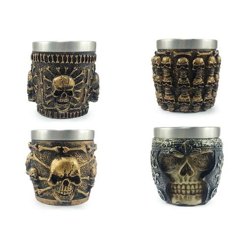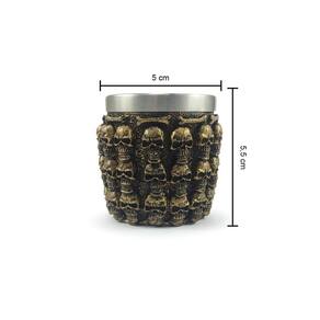 Kit 4 Copos para shot modelo caveira, lindo com seu interior em aço inox e exterior em resina, confeccionado de modo semi-artesanal, ideal pra quem gosta de tomar um shot com família e amigos, pode ser usado como decoração por conta do fino acabamento e é uma ótima opção para presentear familiares e amigos.