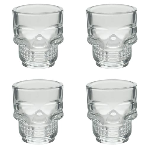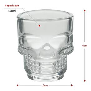 Kit 4 Copos Shot Vidro Sodo Cálcico Caveira Rock Style 50ml Confeccionado em vidro resistente o copo para dose caveira é ideal para os momentos mais distraídos e divertidos, com ela você irá apreciar uma bela dose da sua bebida preferida com um produto lindo e sofisticado.