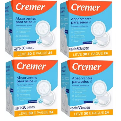 Kit com 04 caixas de absorvente para seios Cremer c/30