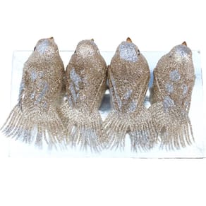 Kit 4 Decoração Natal Presilha Pássaro Bronze Com Glitter