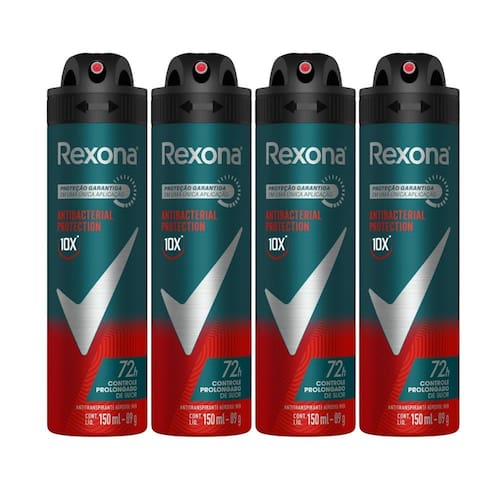 Kit 4 Desodorante Rexona Antibacterial Protection Men Aerosol Antitranspirante 72h 150ml