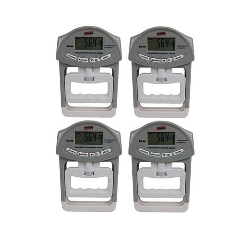 KIT 4 DINAMÔMETRO DIGITAL MOD. DM-90 PORTÁTIL MANUAL FAIXA 1 A 90KG. GRADUAÇÃO 0.1KG DESCRIÇÃO: Esse utilizado para acompanhamento de ginastas, laudos ergonômicos, jogadores de tênis, escaladores, aparelho para a recuperação em fisioterapia, exames clínicos entre outros. DESTAQUES: Digital, design ergonômico, leve e compacto. Captura automática da força máxima, armazena e releitura de resultados para diferentes usuários. Possui manivela ajustável, acessível para todas as idades. APLICAÇÕES: O dinamômetro manual modelo DM-90 pode ser utilizado para análise da força muscular do punho, laudos ergonômicos, no acompanhamento de ginastas, e esportistas. Ideal para auxiliar na recuperação em fisioterapia, exames e clínicos através da dinamometria de punho. ESPECIFICAÇÕES TÉCNICAS: Visor de LCD com 1" (2,5 cm) Construído material plástico de alta resistência Unidade de medida: Kg / lb Capacidade máxima: 90 kg / 198 lb Divisão: 0.1 Kg / 0.2 lb Alimentação: 2 x 1.5 V baterias AAA Exatidão: ± 0.5 Kg / 1 lb Ambiente de operação: Temperatura: 0 °C a 35 °C Umidade de operação: 30 U.R. % a 90 % U.R. Peso: 319 g Dimensão: 19,5 cm x 12,3 cm x 3 cm ITENS FORNECIDOS: 4 - Dinamômetro digital DM-90 Manual de instruções