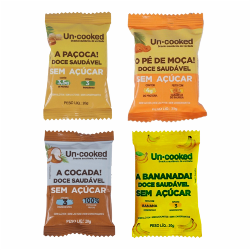 Kit com 4 Doces Sem Adição de Açúcar e Veganos Uncooked: A Paçoca, O Pé de Moça, A Cocada e A Bananada