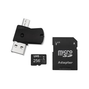 Kit 4 em 1 Cartão de Memória 256GB Ultra High Speed-I U3 + Adptador USB/OTG Tipo C + Adaptador SD - MC154