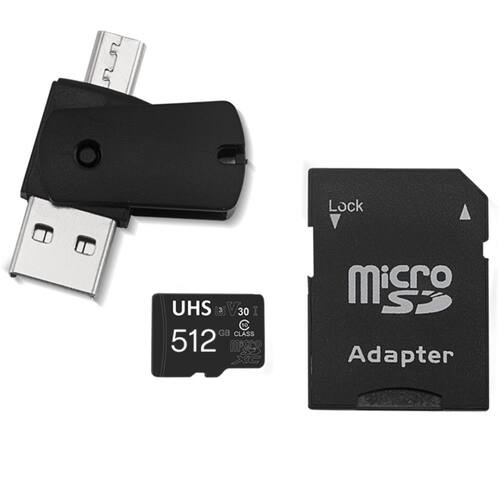 Marca: Multi Modelo: Kit 4 em 1 Cartao de Memoria 512GB Ultra High Speed-I U3 - Adptador USB/OTG Tipo C - Adaptador SD - MC155 Cor: Preto Capacidade: 512GB Formato: microSDXC Interface: UHS-I Velocidade de Leitura: ate 100 MBs Velocidade de Gravacao: ate 90 MBs Classe de Velocidade: Class 10 -C10- Classe de Velocidade UHS: U3 Classe de Velocidade de Video: V30 Aplicativos -A1/A2-: A1 Compatibilidade: Smartphones, tablets, cameras de acao, drones, notebooks, consoles Temperatura de operacao: - 25c a 85c Garantia: 10 anos de garantia