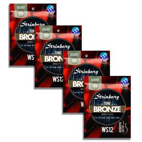 Kit 04 Encordoamento Strinberg Para Violão WS12 - 6 CordasO Encordoamento Strinberg Para Violão WS12 de 6 cordas é a escolha perfeita para músicos que buscam qualidade e versatilidade em seu som. Com sua composição de alta qualidade, essas cordas oferecem um timbre expressivo e brilhante, permitindo que você explore todo o potencial do seu violão. Seja para dedilhados suaves ou acordes intensos, o Encordoamento Strinberg WS12 proporciona uma resposta sonora precisa e uma durabilidade excepcional. Renove o som do seu violão e mergulhe na música com confiança, sabendo que está usando um produto confiável e de alto desempenho.Especificações Técnicas:• Modelo: WS-12• Espessuras: 1º - .012 / 2º - .016 / 3º - .025 / 4º - .033 / 5º - .044 / 6º - .054• Revestimento de bordões: Bronze.• Contém corda Mi (1º) extra.Conteúdo da Embalagem:• 04 Encordoamento Strinberg Para Violão WS12 - 6 Cordas• Manual e Certificado de GarantiaImportante:• Garantia de 90 Dias.• Valor Kit.