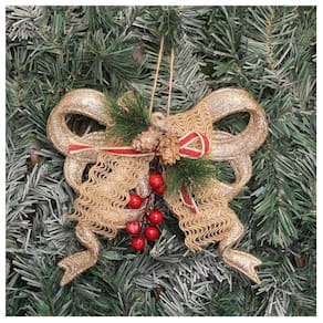 Kit 4 Enfeite Pendente Natalino Laço Dourado Com Brilho Natal 18cm -