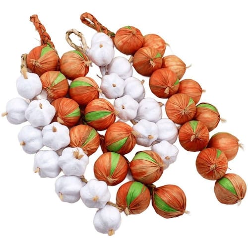 Kit 4 Tranças De Cebolas Artificial Artesanal De 47cm;Kit 4 Tranças De Alhos Artificial Artesanal De 32cm;