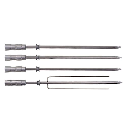 ITENS INCLUSOS: - 3 Espetos Simples (AxLxP): 3,5 x 3,5 x 65cm - 1 Espeto Triplo (AxLxP): 3,5 x 7 x 65cm
