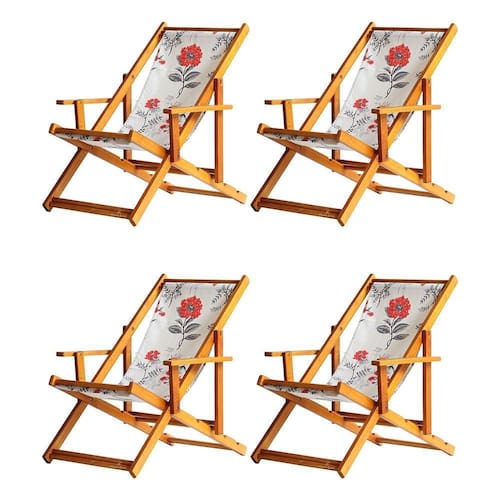 Kit 4 Espreguiçadeira Preguiçosa Dobrável Mel Cb-cinza Floral