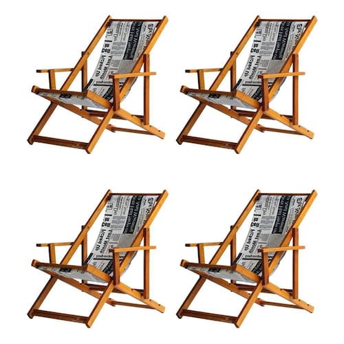 Kit 4 Espreguiçadeira Preguiçosa Dobrável Mel Cb-jornal 4 ESPREGUIÇADEIRAS ENVERNIZADA MEL C/BSabe aquele final de tarde que você tanto espera para tirar um descanso merecido? Ou aquela viagem para a praia programada a meses com a família? Pois é, nossas cadeiras espreguiçadeira serve exatamente para esses momentos, com várias opções de cores, os tecidos além de charmosos são hidro-repelentes e se adequam a qualquer ambiente, facilmente removíveis para higienização.Estrutura 100% de madeira maciça de ótima qualidade, a espreguiçadeira é totalmente dobrável e reclinável (4 posições de ângulo), com descanso para braço, sendo possível montar invertida sem o encosto de braço, perfeita para seu lazer em todos os ambientes, esse é o item que definitivamente não pode faltar na vida de quem de fato, quer aproveitar bons momentos! FICHA TÉCNICA DO PRODUTO:04 Níveis de Regulagem de Altura;Tecido Reforçado;Fabricada em Madeira Maciça Pinus;Peso aproximado: 7,5 Kg;Suporta aproximadamente 120 kg;Cor da Madeira: Mel Dimensões aproximadas do Produto:Altura 1: 69 cm;Altura 2: 82 cm;Altura 3: 91 cm;Altura 4: 100 cm;Profundidade: 105 cm. Dimensão aproximada total:Comprimento: 135 cm;Largura: 66 cm; Informações Adicionais:Garantia: 90 dias contra defeitos de fabricação.Acompanha 4 cadeiras Obs. A cor pode variar da foto conforme a tonalidade da madeira e iluminação.. !! Marca: Brasil Móveis