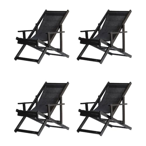 Kit 4 Espreguiçadeiras Dobrável Black Cb-preto 4 ESPREGUIÇADEIRAS ENVERNIZADAS BLACK C/BSabe aquele final de tarde que você tanto espera para tirar um descanso merecido? Ou aquela viagem para a praia programada a meses com a família? Pois é, nossas cadeiras espreguiçadeira serve exatamente para esses momentos, com várias opções de cores, os tecidos além de charmosos são hidro-repelentes e se adequam a qualquer ambiente, facilmente removíveis para higienização.Estrutura 100% de madeira maciça e verniz especial, que garante sua qualidade e durabilidade, a espreguiçadeira é totalmente dobrável e reclinável (4 posições de ângulo), com descanso para braço, sendo possível montar invertida sem o encosto de braço, perfeita para seu lazer em todos os ambientes, seja ele externo ou interno, esse é o item que definitivamente não pode faltar na vida de quem de fato, quer aproveitar bons momentos! FICHA TÉCNICA DO PRODUTO:04 Níveis de Regulagem de Altura;Tecido Reforçado;Fabricada em Madeira Maciça Pinus;Peso aproximado: 7,5 Kg;Suporta aproximadamente 120 kg;Cor da Madeira: Preta Dimensões aproximadas do Produto:Altura 1: 69 cm;Altura 2: 82 cm;Altura 3: 91 cm;Altura 4: 100 cm;Profundidade: 105 cm. Dimensão aproximada total:Comprimento: 135 cm;Largura: 66 cm; Informações Adicionais:Garantia: 90 dias contra defeitos de fabricação.Acompanha 4 cadeiras Obs. A cor pode variar da foto conforme a tonalidade da madeira e iluminação.. !! Marca: Brasil Móveis