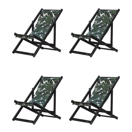 Kit 4 Espreguiçadeiras Dobrável Black Sb-folhas Verdes