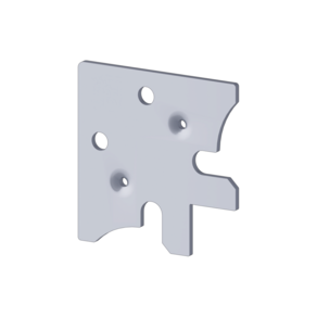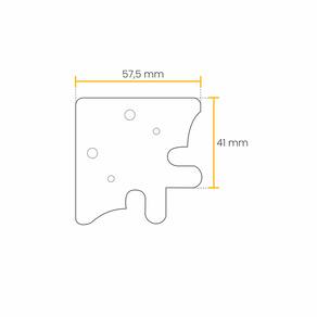 Comprimento: 57,5 mm Largura: 41 mm Espessura: 1,7 mm Distância entre furos maiores: 30 mm Distância entre furos menores: 25 mm Compatibilidade: perfis de alumínio com medidas compatíveis