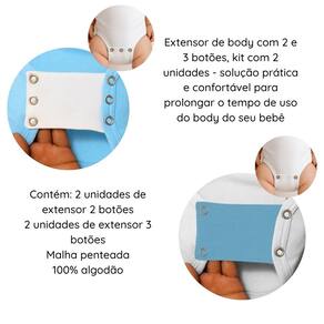 O Kit Extensor de Body é a solução prática e econômica para acompanhar o crescimento do seu bebê com mais conforto e menos desperdício. Ideal para prolongar o uso das roupinhas durante os surtos de crescimento.