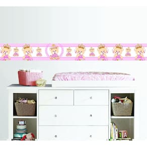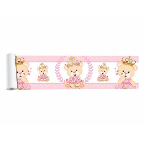 Kit 4 Faixas Adesivas Border Urso Coroa Rosa Quer um toque especial para o quarto do seu bebê então você não pode deixar faltar nossas faixas decorativas, produto de qualidade superior e fácil aplicação. O cantinho da sua princesa vai ganhar um toque especial, moderno, bonito e aconchegante Tamanho: - altura: 15 centímetros - comprimento: 1 metro Vantagens: - renove seus ambientes de forma rápida e prática. - aplicação fácil e sem sujeira, pois não precisa de cola. - não precisa contratar mão de obra profissional para aplicar. - acompanha manual impresso. Características: - produzido em vinil adesivo fosco, próprio para decoração. - impresso em alta resolução. - pode ser limpo com pano úmido e sabão neutro. - material liso, não possui textura ou relevo. - antimofo, não possui cheiro e não propaga fogo. - durabilidade média de 5 anos em ambiente interno. - os rolos se encaixam lateralmente, dando continuidade ao desenho. - espessura: 0,10mm mais firme e resistente, facilita o manuseio e aplicação . Onde posso aplicar - pode ser aplicado em qualquer superfície lisa como paredes, madeiras, mdf, vidros, metais, gesso, azulejos, móveis, porta, etc. - não aplicar em superfícies úmidas, porosas, texturizadas ou com relevo. Marca: Mega Adesivos