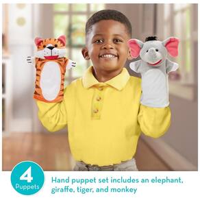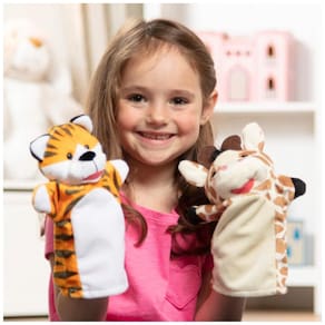 Esta coleção familiar de fantoches é composta por quatro adoráveis bonecos de luva com tema animal, perfeitos para crianças e cuidadores brincarem juntos. Com eles, é fácil representar cenas, praticar novo vocabulário e passar bons momentos brincando. Além disso, esses bonecos são ótimos para ajudar no desenvolvimento de habilidades motoras e autoconfiança. Feitos com tecidos laváveis e estampas brilhantes, esses bonecos de mão macios e doces foram projetados para durar e certamente serão brinquedos favoritos por muitos anos. Eles são dimensionados para adultos e crianças, possuem cabeças de pelúcia macias que incentivam abraços e são recomendados para crianças a partir de 2 anos. O produto é enviado em embalagem certificada, sem frustrações.