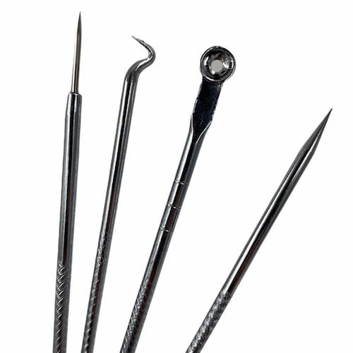 Kit 4 Ferramentas Extrator De Cravo Curetas Inox Com Estojo Curetas para remover cravos e espinhasLimpe a pele antes de extrações para evitar infecções, limpe as ferramentas com álcool antes de usá-las.Basta colocar a ponta que contém o laço sobre a parte superior do cravo e pressione-o suavemente, o cravo irá sair facilmente.Melhor resultado após o banho quando os poros estão abertos.Limpar o extrator com algodão e álcool após o uso. Especificações/características do Produto:- Quantidade: 4 Ferramentas- Material: Aço Inox- Tamanho: 11 á 13 cm- Acompanha estojo para guardar as curetas.Itens inclusos:- 4 Ferramentas removedoras de cravos.- 1 Estojo para guardar.Atenção:1 - O cliente tem até 7 dias corridos, após o recebimento, para devolução do produto artigo 49 .2 - Lembrando que o produto deve retornar sem defeitos e na embalagem .3 - Imagem Meramente ilustrativa. Ean: 7906688998031