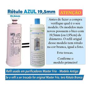 Purificadores de Água Masterfrio antigos com rótulo branco e encaixe fino (19,5mm de diâmetro)Função