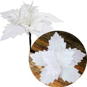 Kit 4 Flores Artificiais Branco Com Glitter De 25cm;
