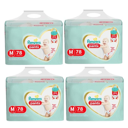 FRALDA INFANTIL PAMPERS PREMIUM CARE PANTS 78 UNIDADES Experimente a nova Pampers Premium Care Pants! Com cintura elástica 360° é fácil de pôr, mesmo quando eles estão em movimento, e mantém a pele seca e protegida. • O jeito fácil de trocar. • Fácil de pôr. • Cintura elástica 360° que se adapta ao corpinho do seu bebê com sistema de Ajuste Inteligente. • Fácil de tirar, rasgue suas laterais e retire-a normalmente. • Canais de ar que evitam que a fralda fique caída. • Ultra suave e respirável mantendo sua pele seca e protegida. • Indicador de umidade te avisa quando o bebê tem que ser trocado • Até 12 horas de proteção para noites inteiras de sono sequinho. Pode variar de acordo com os hábitos e características do bebê. Indicação: crianças de 6 a 10kg Ean: 7500435145978