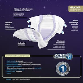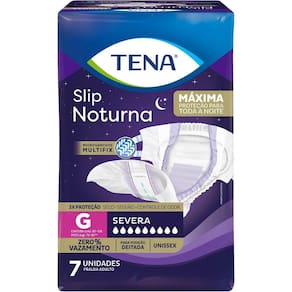 Kit 4 Fraldas Geriátricas Tena Noturna G 28 unidades TENA Noturna é uma fralda unissex para usuários com pouca ou sem mobilidade (acamados) indicada para incontinência severa. Máxima proteção, Zero % vazamento durante toda a noite. Com núcleo de rápida absorção e camada de polpa dupla que mantem a urina longe da pele,mantendo-a seca. O Kit contém: 4 pacotes de Fraldas Geriátricas Tena Noturna G com 7 unidades. *Compre Produtos Tena.