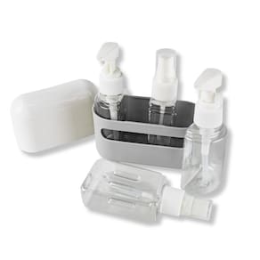 Contém: 01 - case plástica com tampa branca 02 - frascos 50ml pump 02 - frascos 50ml spray Atenção: envio conforme não sendo possível escolher a cor do produto. O kit de viagens que acompanha case com tampa é ideal para levar para qualquer lugar Case mantém os frascos de pé e bem seguros, organizados perfeitamente para caber na sua bolsa, mala ou mochila. Composto por 4 frascos que possuem relevo na frente e verso, um de encaixe e um para encaixar, fazendo com que os quarto frascos se conectem perfeitamente de forma que não se soltem. A case com tampa encaixável possui uma pequena abertura na frente para que você veja os produtos que estão armazenados através do design do frasco, feito de plástico transparente. Frasco spray: possuem tampa de proteção removível e mecanismo de pulverização fina, ideal para líquidos leves. Frasco pump: contam com um mecanismo , que libera o produto em pequenas quantidades, sendo apropriados para substâncias mais viscosas, cada frasco acompanha uma trava anti vazamentos. Características principais: - frascos com relevos encaixáveis; - case com tampa removível; - frasco spray com tampa; - frasco pump com trava; - evitam vazamentos e desperdícios; - ideal para viagens e para o dia a dia; - 50ml cada frasco; - design inovador. Medidas: Case: 12,5 x 10,5 x 4,3 centímetros a x l x p . Frasco pump: 11 x 4,5 x 4,2 centímetros a x l x p . Capacidade de 50ml. Frasco spray: 11 x 4 x 4,2 centímetros a x l x p . Capacidade de 50ml. Boas compras ; Marca: Arte Seducao