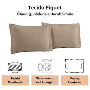 Kit 4 Fronhas Porta Travesseiro 50x70 Piquet Algodão Hotel Cor: Bege É uma opção elegante e clássica para decorar a cama. O Piquet é um tecido de algodão com textura em alto relevo, confere um visual sofisticado, traz a maciez e o conforto, além de um toque de beleza e elegância na decoração do ambiente.