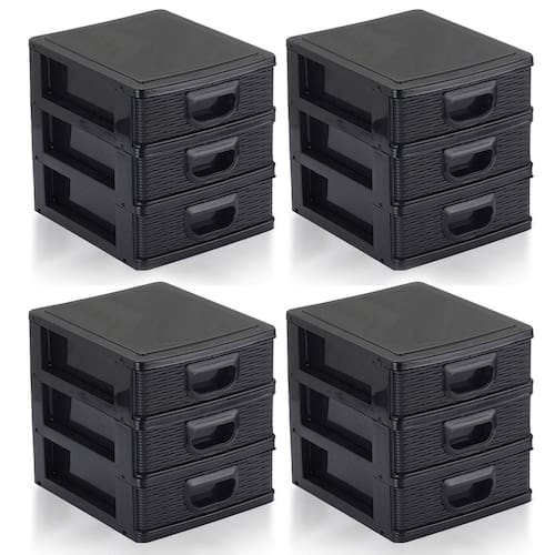 Kit 4 gaveteiro organizador de mesa 3 gavetas ========== sobre o produto ========== Mantenha sua mesa organizada com o gaveteiro organizador de mesa 3 gavetas. Compacto e funcional, ele é ideal para armazenar pequenos objetos como materiais de escritório, acessórios de maquiagem ou itens diversos. Seu design moderno combina com qualquer ambiente, seja no escritório, quarto ou banheiro. Feito com material resistente, proporciona praticidade e durabilidade no dia a dia. ========== especificações ========== Design compacto e funcional, ideal para organização. Três gavetas espaçosas para melhor armazenamento. Material resistente e fácil de limpar. Versátil, pode ser em diversos ambientes. ========== ficha técnica ========== Unidades: 4 Medidas: 15 x 14 x 13 cm Material: polipropileno Marca: monte libano : 3 meses Estamos online para quaisquer dúvidas, Agradecemos e aguardamos o seu pedido. P: o gaveteiro é empilhável R: sim, ele pode ser empilhado para otimizar ainda mais o espaço. P: as gavetas possuem trava para não cair R: sim, as gavetas deslizam suavemente e possuem um limitador para evitar quedas. P: posso usar no banheiro para guardar itens de higiene R: sim, o material resistente permite o uso em diversos ambientes, incluindo banheiros. P: o produto é novo ou Marca: Não Informado Ean: 7904189055697
