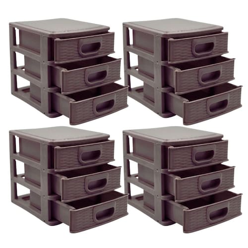 Kit 4 Gaveteiro Organizador De Mesa 3 Gavetas Textura Marrom