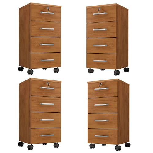 Kit 4 Gaveteiros com Chave e Rodízios 4 Gavetas Gávea
