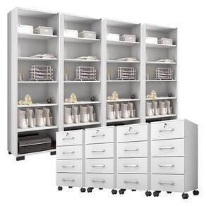 Kit 4 Gaveteiros para Escritório Gávea com Chave e 4 Livreiros Office Branco Fosco - Móveis Leão