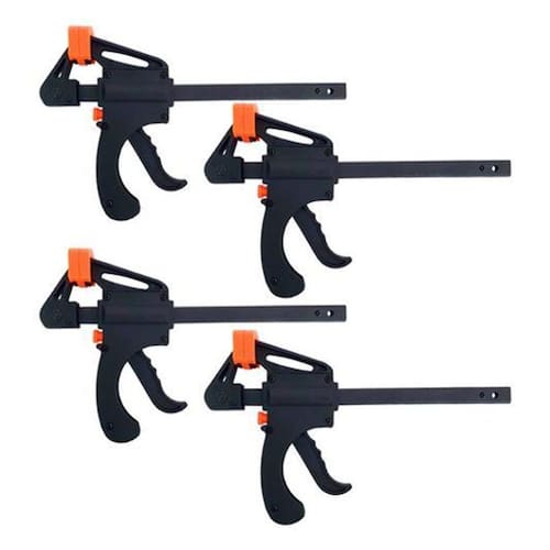 Kit 4 Grampos Sargento De Aperto Rápido 6pol. 150mm Charbs Kit 4 Grampos Sargento de Aperto Rápido 150mm Charbs Kit com 4 Grampos Sargento de Aperto Rápido 150mm 6 Polegadas para Marceneiro Charbs. Haste metálica com 6mm de espessura e 19mm de largura. - Marca: Charbs - Referência: 00051 - Jogo com 4 grampos sargento - Abertura máxima: 6 150mm - Profundidade da garganta: 60mm - Comprimento total: 330mm - Haste mais grossa e pega mais firme que os grampos mais baratos - Espessura da haste: 6mm - Largura da haste: 19mm - Indicado para fixar peças para colagem, montagem de moveis e etc. - Fabricado em material de alta performance - Haste metálica - Mordentes em plástico removíveis - Possui fácil manuseio - Ferramenta essencial para profissionais como marceneiro, carpinteiro, pedreiro entre outros - Qualidade profissional - Peso de cada grampo: 515 gramas - : 90 dias